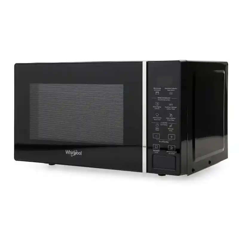 Microondas acabado en espejo – 20 LTS con 5 niveles de potencia, 4 opciones para descongelar y 12 opciones de autococción. Funciones para mantener caliente, autolimpieza, modo ahorro de energía. Plato giratorio, pantalla y control digital con LED.