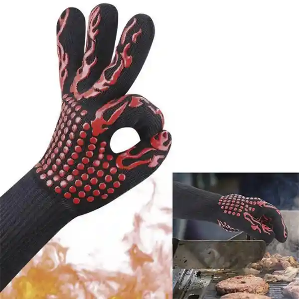 Este Guante es Perfecto Para Proteger tu Mano de Altas Temperaturas en la Cocina, el Horno, Asador, la Chimenea, en la Reparación de Vehículos, Soldadura, Reparación Eléctrica y al Manipular Otros Artículos Muy Calientes. Tiene su Capa Exterior Hecha de Hilo Deyan Que es Resistente al Fuego, Con Recubrimiento de Silicona Antideslizante. la Manga Larga Evita Que tu Antebrazo y Muñeca se Quemen Cuando se Sostienen en un Horno Caliente. Por Dentro Está Forrado Con Fibras de Algodón Supersuave Para Respirar, el Guante de Hornear Tiene Una Buena Circulación de Aire. Características Del Producto: Protege la Mano, Muñeca y Antebrazo. Soporta Alta Temperatura Hasta 800 °C. Recubrimiento de Silicona Anti Deslizante Por Ambos Lados. Sirve Para Mano Derecha o Mano Izquierda. Talla Única, Sirve Para Mujeres y Hombres. Fácil de Limpiar, Lavable a Mano, Lavavajillas o Lavadora Fácil de Almacenar. Es Grueso Pero Ligero. Contenido de la Caja: 1 Guante Resistente al Calor