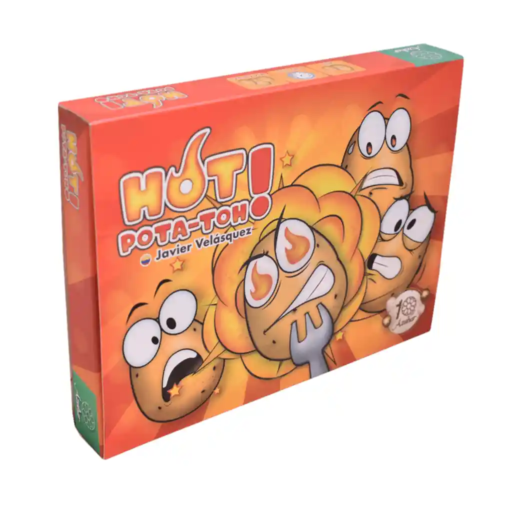 SOLO EN::: *----------> SONGENIALES !!! Hot-Pota-toh! es un juego de presionar la suerte, en cuyo mazo hay una patata explosiva que los jugadores deben evitar sacar, al mismo tiempo que tratan de conseguir cartas que den puntos "Phew". El mazo se rota entre los jugadores y cada jugador puede, o sacar una carta del mazo, o jugar una carta de su mano (no las dos cosas) hasta que alguien saque la papa caliente y explote, perdiendo todos los puntos que había acumulado en la ronda. Luego comienza una nueva ronda. Lo mejor de juegos con los poderes de las cartas, que contienen más mecánicas de presión de suerte. De Javier Velásquez, diseñador de Xanadú, Aye, Takyon, entre otros. Fundas Compatibles: - Tiempo de Juego: 15 minutos o más Genero: Estrategia Tipo: Juego Básico Idioma: Español