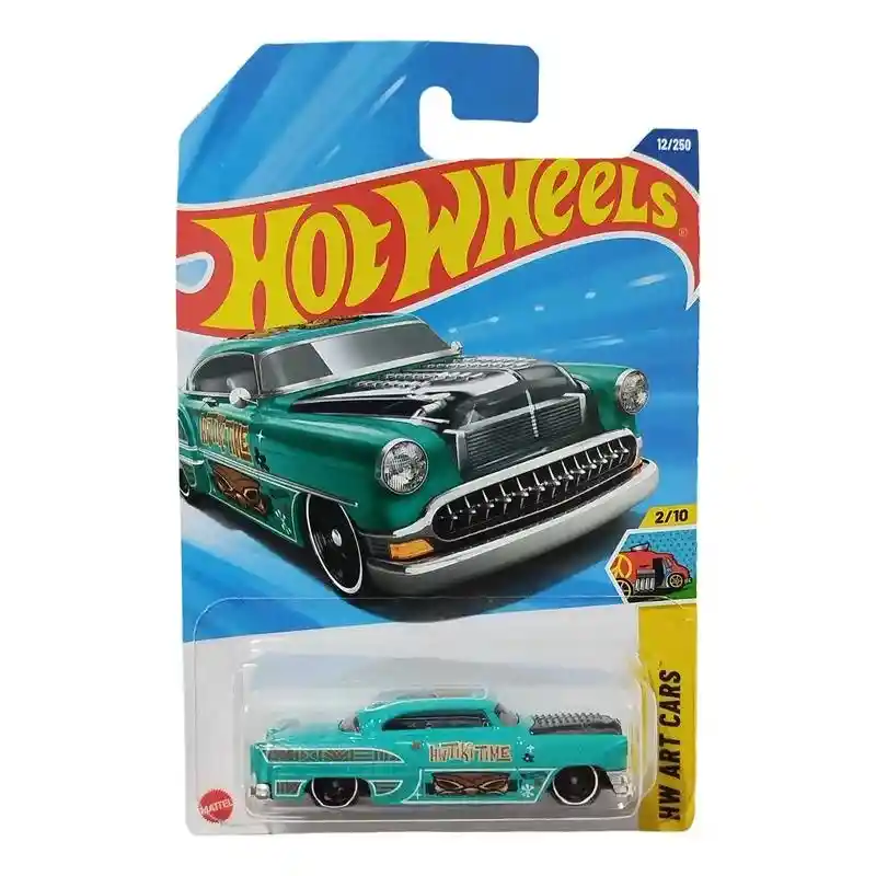 🚗🎨 Hot Wheels Custom ’53 Chevy – HW Art Cars 2/10 (Serie 2025) Un clásico reinventado con arte urbano. Este modelo de 1953 Chevrolet forma parte de la serie Art Cars (2 de 10), destacada por su diseño colorido y detalles inspirados en la Kustom Kulture . Fabricado en die‑cast y plástico, este vehículo combina durabilidad con estilo artístico. 🌟 Características destacadas 🏁 Escala 1:64 (~6.5 cm), perfecto para exhibir o jugar 🎨 Decoración artística en color teal (o verde), con detalles tipo “woodgrain” y rótulo distintivo en el techo 🔁 Parte de la serie HW Art Cars (2/10) – objetos con mensaje en las letras del techo que forman parte de un conjunto 🖌 Combina cuerpo metálico y base plástica para mayor realismo y resistencia 📦 Viene en empaque blister coleccionable, ideal para fans y vitrinas ✅ ¿Por qué es una excelente adición? Diseño artístico: pieza creativa con herencia de la cultura custom de los 50s‑70s Coleccionable de serie limitada: 2/10 en Art Cars, parte de un set que forma un mensaje Alta valoración entre fans: versiones como Tiki Time reciben elogios por su estilo único Variedad de ediciones: disponible en modelo estándar teal y edición TH, ideal para distintos públicos