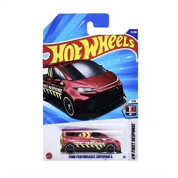 🚐⚡ Hot Wheels Ford Performance Supervan 4 – HW: First Response 1/5 (Mattel) ¡Velocidad y potencia en forma de van! El Hot Wheels Ford Performance Supervan 4 es parte de la serie HW: First Response (1 de 5), dedicada a vehículos diseñados para respuestas rápidas y acción extrema. Inspirada en la icónica Ford Supervan, este modelo combina el estilo de una furgoneta con el alma de un superdeportivo, destacando su espíritu Ford Performance. ⭐ Características destacadas: Escala 1:64 (~6,5 cm), ideal para pistas Hot Wheels o coleccionistas. Serie HW: First Response, pieza 1 de 5. Réplica inspirada en la Ford Supervan 4, famosa por sus líneas aerodinámicas y rendimiento de alto nivel. Carrocería con detalles futuristas, tomas de aire deportivas y spoiler trasero prominente. Colores vibrantes y acabados metálicos (varían según la edición). Llantas deportivas para un look racing impresionante. Fabricado en die-cast (metal) con base plástica resistente. Apto para mayores de 3 años.