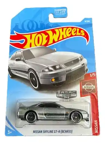 🇯🇵🏎️ Hot Wheels Nissan Skyline GT-R (BNR33) – HW: J-Imports 5/10 (Mattel) ¡Una leyenda japonesa lista para rugir en tus pistas Hot Wheels! El Hot Wheels Nissan Skyline GT-R (BNR33) forma parte de la serie HW: J-Imports (5 de 10), dedicada a los íconos del automovilismo japonés. Este modelo es una fiel representación del mítico Skyline R33, famoso por su rendimiento, diseño agresivo y estatus de culto entre los entusiastas del JDM (Japanese Domestic Market). ⭐ Características destacadas: Escala 1:64 (~6,5 cm), ideal tanto para pistas Hot Wheels como para coleccionistas. Serie HW: J-Imports, pieza 5 de 10. Diseño inspirado en el auténtico Nissan Skyline GT-R BNR33, con carrocería aerodinámica, alerón trasero y parrilla icónica. Colores vibrantes y acabados metálicos o perlados (dependen de la edición). Llantas deportivas que le otorgan un look racing espectacular. Fabricado en die-cast (metal) con base plástica resistente. Apto para mayores de 3 años.
