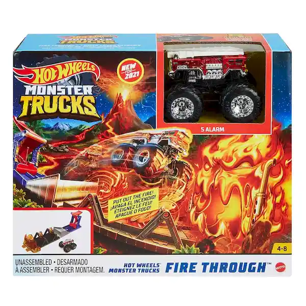 El Set de Monster Trucks Fire Through de Hot Wheels Les Permite a Los Niños Librar Una Ardiente Batalla Entre el Ataque al ''Monstruo de Fuego'' Que Incendia la Isla de Los Monster Trucks y el Heroico 5 Alarm. ¡En Forma de Monster Truck! Para Salvar el Día Los Niños Deben Perfeccionar su Puntería al Lanzar el Intrépido Vehículo 5 Alarm a Escala 1: 64 Por Encima de Las ''Llamas'' Que Giran ¡Y Luego Pasar a Través Del Monstruo de Fuego Que Bloquea la Rampa! Es un Juego Completo en Una Caja Con un Desafío Único Que Muestra Las Habilidades Del Camión Héroe. ¿Quién Mejor Para Apagar un Incendio en la Isla de Los Monster Trucks Que 5 Alarm? se Conecta Con Otros Sets de Monster Trucks de Hot Wheels Para Aumentar el Desafío la Aventura y la Acción (Cada Set se Vende Por Separado y Está Sujeto a Disponibilidad). Los Colores y Las Decoraciones Pueden Variar.