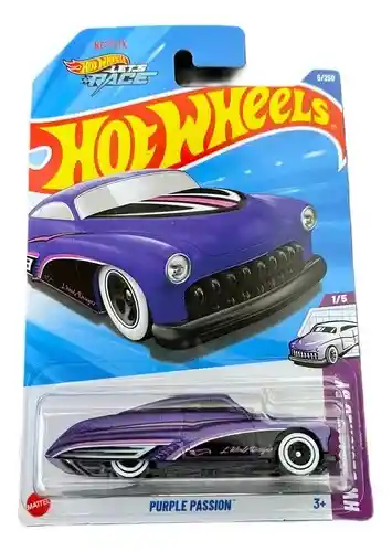 💜🚗 Hot Wheels Purple Passion – HW: Designed By 1/5 (Mattel) ¡Pura elegancia custom sobre ruedas! El Hot Wheels Purple Passion forma parte de la serie HW: Designed By (1 de 5), dedicada a modelos creados o rediseñados por legendarios diseñadores Hot Wheels. Este icónico vehículo es un tributo a los clásicos custom cars estadounidenses, con líneas suaves, carrocería rebajada y un estilo retro que nunca pasa de moda. ⭐ Características destacadas: Escala 1:64 (~6,5 cm), ideal para colección o pistas Hot Wheels. Serie HW: Designed By, pieza 1 de 5. Diseño clásico tipo lead sled, con carrocería fluida, techo bajo y guardabarros envolventes. Color morado vibrante o acabados metálicos, dependiendo de la edición. Llantas cromadas y detalles pintados que resaltan su estilo vintage. Fabricado en die-cast (metal) con base plástica resistente. Apto para mayores de 3 años.