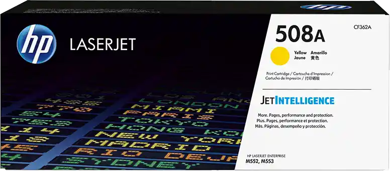 Hp Toner 508a Yellow Impresora 5000paginas. *Promedio aproximado según la norma ISO/IEC 24711. HP Color LaserJet Enterprise M553dn(B5L25A), Impresora color HP LaserJet Enterprise M553dh(B5L27A), Impresora multifunción color HP LaserJet Enterprise M577dn(B5L46A). Ref CF362A
