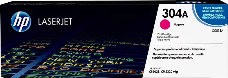 Hp Toner 304a Magenta Impresora 2800pags. *Promedio aproximado según la norma ISO/IEC 24711. Compatibilidad: HP Color LaserJet CM2320n MFP(CC434A), HP Color LaserJet CM2320nf MFP(CC436A), Impresora HP Color LaserJet CP2025dn(CB495A), Impresora HP Color LaserJet CP2025n(CB494A). Ref CC533A