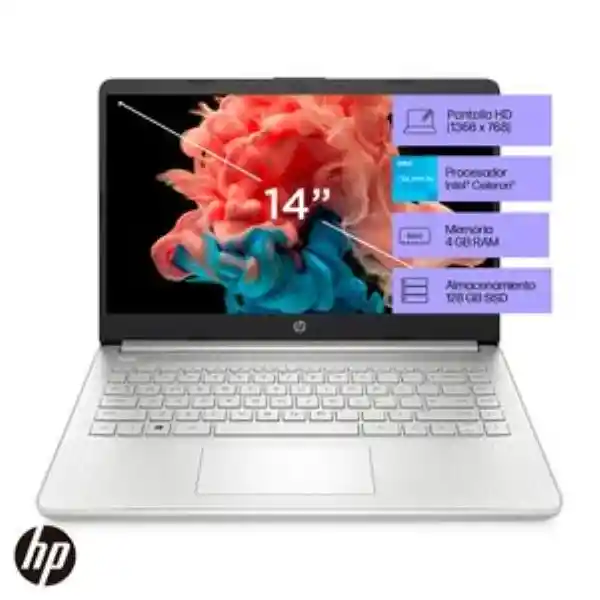 Hp Laptop 14-Dq0532La Windows 11 Home14''Intel Celeron 4Gb Ram128Gb Ssd Plateado Natural.