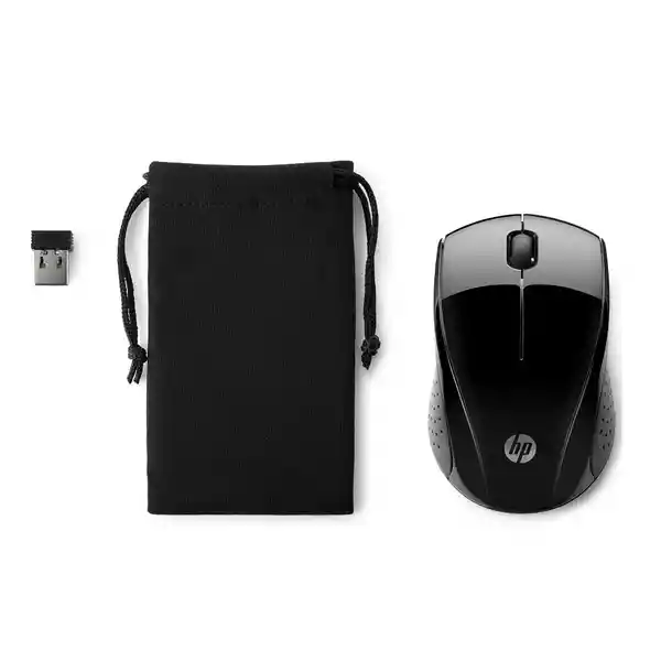 Mouse Inalámbrico hp 220 Negro Con Funda. Diseño Ambidiestro. Receptor Usb. Incluye Baterías. Bajo Consumo.