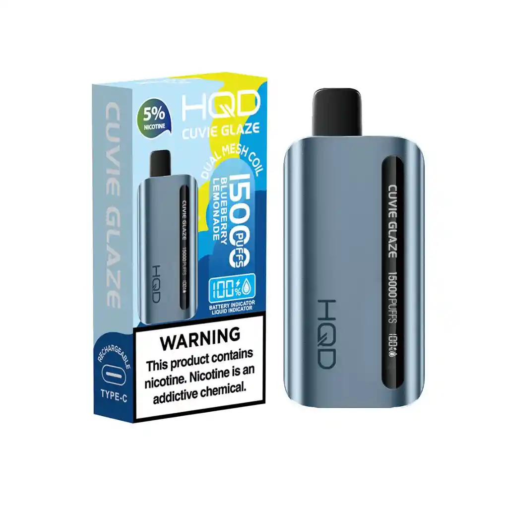 LIMONADA DE MORA AZUL. Con una batería de 650 mAh, el vape desechable Glaze de HQD tiene capacidad para 20 ml de líquido con hasta 15000 vapeadas por dispositivo. Equipado con una resistencia de 1.3 ohm, el HQD Glaze ofrece el doble de sabor que otras marcas de vaporizadores desechables del mercado.