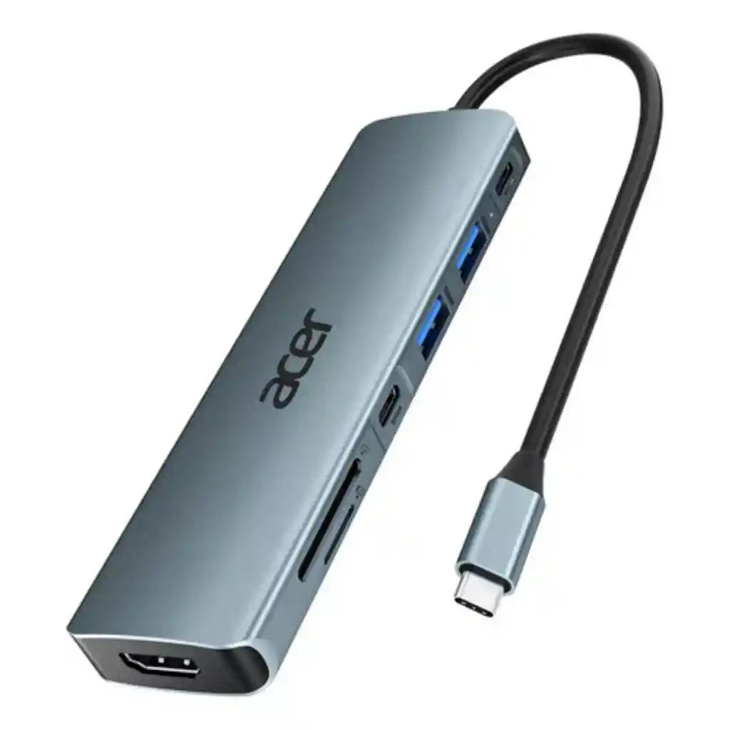 Acer Hub USB C, divisor USB C a HDMI 7 en 1, 2 puertos USB 3.1 GEN1 y 5Gbps tipo C, puerto HDMI 4K, carga PD 100W, lector de tarjetas SD, para portátiles iPad Pro, MacBook Pro Acer y más