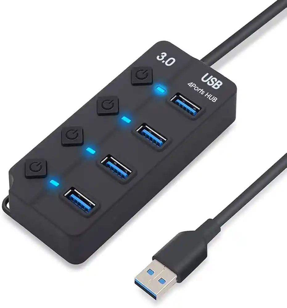 Hub USB 3.0 con Interruptores Expande tus puertos USB y controla cada dispositivo de forma independiente con este práctico Hub USB 3.0 con interruptores. ✅ Múltiples puertos USB 3.0 de alta velocidad ✅ Interruptores individuales ON/OFF para cada puerto ✅ Evita desconectar dispositivos constantemente ✅ Compatible con memorias USB, teclado, mouse, discos duros y más ✅ Diseño moderno, compacto y portátil 💻 Conecta y controla todo desde un solo lugar 🎯 Ideal para trabajo, oficinas, técnicos y gamers 📦 Más comodidad, organización y eficiencia en tu escritorio
