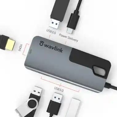 TRAGUATAN COLOMBIA Distribuidor Autorizado Wavlink en Colombia. Hub USB-C para Macbook Pro 7 en 1. Gran capacidad suficiente para proporcionar energía a los periféricos que conectemos, no tenemos que preocuparnos de contar con una toma de energía extra. Descripción: - USB C a HDMI 4K . - Suministro de energía de 87 W, - Lector de tarjetas SD / Micro SD. - 2 USB 3.0 - Para MacBook Pro, iPad Pro, XPS, Pixelbook y más dispositivos tipo C. - Puerto de entrega de energía USB-C para cargar laptops con un máximo de hasta 87 W - El puerto de datos USB C proporciona una transferencia de datos de alta velocidad de hasta 5 Gbps, puede cargar y descargar fotos, videos, música y otros archivos rápidamente. - Admite hasta 4K, 30Hz y 1920x1080 (1080P) a 60Hz. Productos 100% genuinos, calidad garantizada. Producto totalmente nuevo. Envío Inmediato.