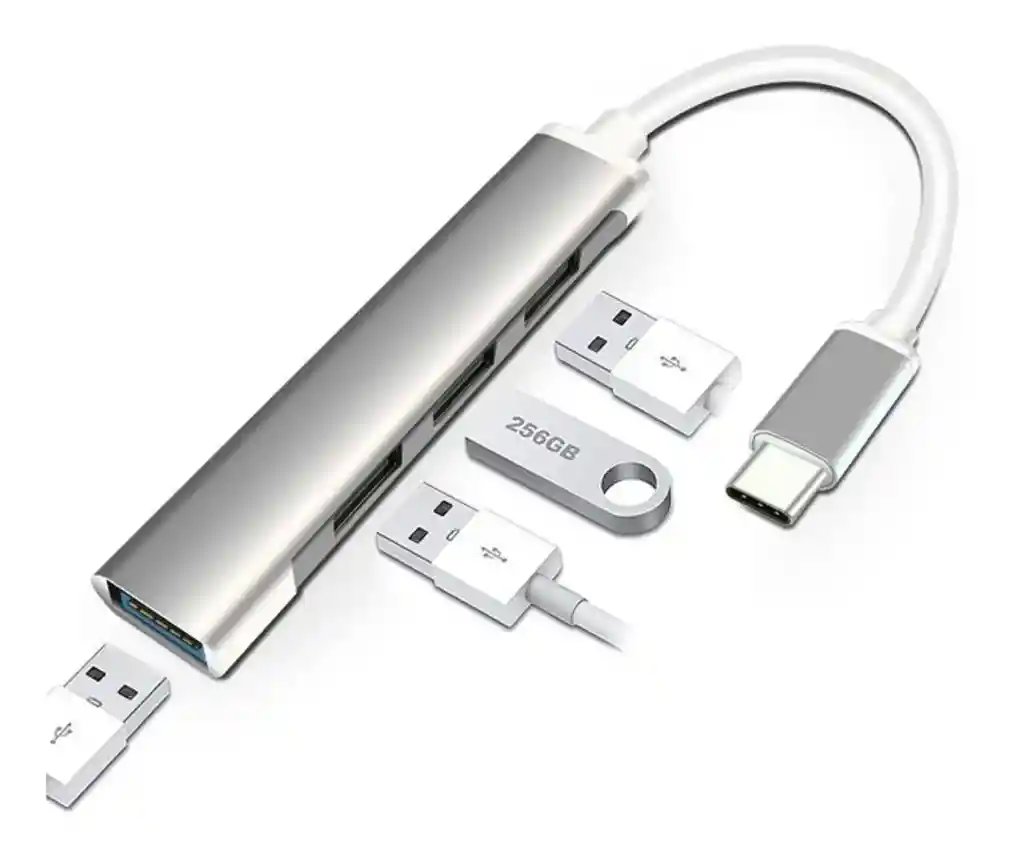 HUB USB TIPO C 4 PUERTOS MULTIPUERTOS USB. CARACTERÍSTICAS: - 4 puertos USB: - 1 puerto 3.0 USB - 3 puertos 2.0 USB - Plug y Play fácil instalación. - Portable. - Entrada tipo C - Ideal para conectar Memorias USB, Mouse, Teclados, Gamepad,
