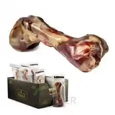 El jamón serrano 370-390gr es rico en proteínas y reporta beneficios en la salud del perro (incluyendo la mejora de la piel y el pelaje). Los huesos de jamón son ideales para fortalecer la dentadura y eliminar el sarro de la mascota. Mordedor natural seguro. Los Serrano Ham Bones de MEDITERRANEAN NATURAL no se cuecen, sino que se someten a un proceso de secado natural para mantener todas sus propiedades nutricionales e impedir que se astillen fácilmente tanto al ser masticados como digeridos por la mascota. Los huesos de jamón serrano MEDITERRANEAN NATURAL son un producto hipoalergénico que no contiene gluten ni ácidos grasos trans. Son fuente natural de ácido oleico. Mediterranean Natural, junto al Departamento de Fisiología Animal de la Universidad de Murcia, ha realizado un estudio de resistencia a la fractura de nuestros Serrano Ham Bones cuyos resultados arrojan que son seguros para los perros siempre y cuando se administren atendiendo a nuestras recomendaciones (cada hueso está indicado para perros de diferentes tamaños). Consulta aquí los resultados de dicho estudio. La pata y el codillo de jamón serrano contienen un 30% de colágeno (imprescindible para el creciemiento y reparación de tejidos, restaura y rejuvenece la piel, fortalece las uñas y los dientes). Al tratarse de producto natural y someterse al vacío en su envasado, es posible que se produzca una salida de líquido que queda a la vista del consumidor (es parte de la grasa del producto, que sale por la presión del vacío). Esto indica que el producto es natural y sus propiedades nutricionales están intactas. https://www.youtube.com/watch?v=2ecbvcZ8chw