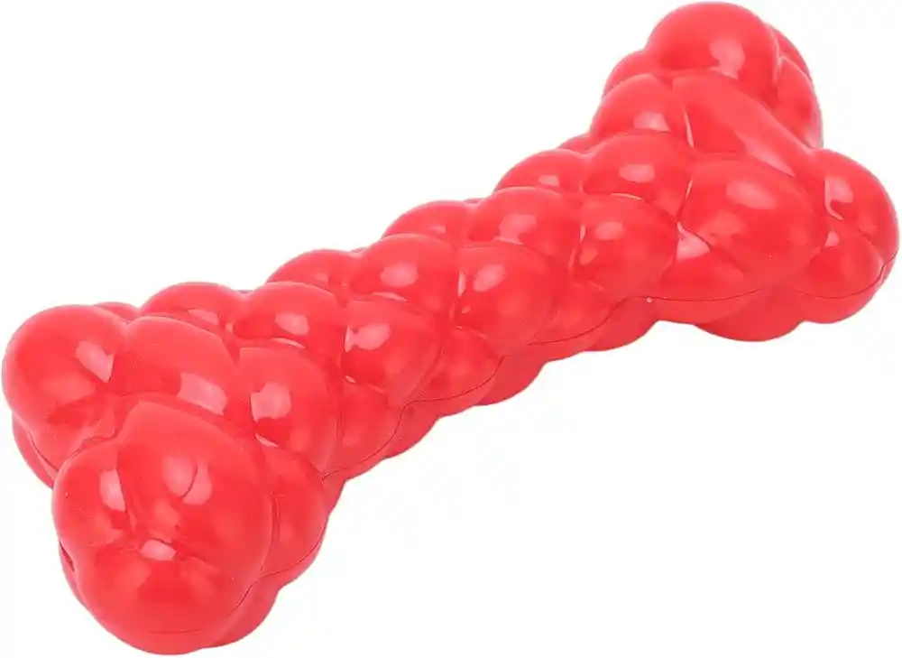 juguetes de goma para masticar para mascotas de la marca Oneber Pet. Diseñados para la salud dental y el entretenimiento de perros y gatos. Hechos de material de caucho duradero y elástico. Ayudan a mantener a las mascotas activas y pueden reducir el estrés. Se venden en varios colores brillantes, incluyendo rosa, azul, rojo y naranja.
