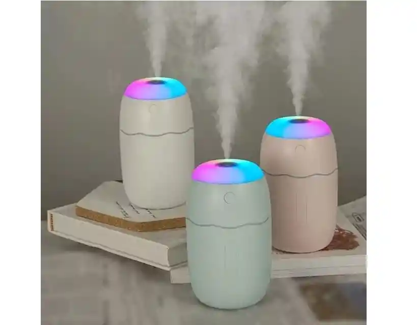 Un humidificador es un dispositivo que aumenta la humedad del ambiente en caso de ser necesario. Por ejemplo, si utilizas aire acondicionado o calefacción puede ser que la humedad del ambiente se vea afectada. Se recomienda un nivel de entre el 40 y el 60%. Cuando la humedad es inferior al 40%, causa efectos negativos en nuestro organismo como la piel o las vías respiratorias muy secas. El uso de los humidificadores es conveniente para mantener estos niveles adecuados de humedad en espacios cerrados. Así, evitarás problemas sobre todo si convives con personas mayores o menores de edad. Son los más sensibles a la sequedad en el ambiente. En concreto, los humidificadores ultrasónicos a parte de crear un ambiente adecuado, son silenciosos y pueden disponer de un sistema de apagado y de iluminación LED. Son los más utilizados en la vida diaria. Beneficios: · Previene la gripe. · Hidrata la piel. · Reduce los ronquidos. · Hidrata garganta y nariz. · Disminuye el frio. DESCRIPCION DEL PRODUCTO: · Luz LED que cambian de color. · Anti-quema seco. · Consumo de Energía: alrededor de 2 W. · Tensión de entrada y salida: DC5V. · Capacidad del tanque de agua: 280 ml