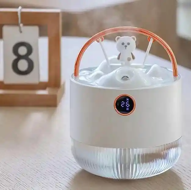 Carga USB: este humidificador portátil adopta carga USB, que se puede cargar fácilmente mediante conexión con una computadora o un banco de energía. Modo dual: este humidificador para automóvil está diseñado con modo de pulverización dual. El modo continuo alivia rápidamente el ambiente de aire seco y el modo intermitente ayuda a mantener una humedad del aire confortable. Hidratación de la piel: este humidificador de escritorio puede hidratar eficazmente la piel seca y humidificar los lugares donde vive, puede relajarse en un ambiente nutritivo. Luz nocturna: este pequeño humidificador está diseñado con función de luz nocturna, que proporciona luces cálidas y románticas por la noche, creando un ambiente confortable. Oso en columpio: este mini humidificador presenta un diseño de estilo de dibujos animados, con una linda figura de oso sentado en el columpio, una decoración ideal para el hogar y la oficina.