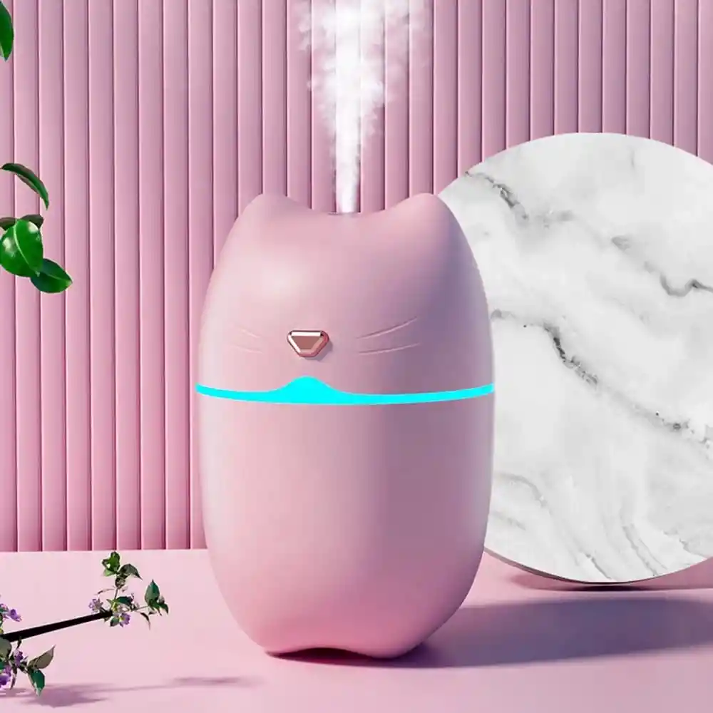 humidificador lindo gato Material: ABS + silicona Tamaño del producto: 75x116mm Tamaño del paquete: 130x80x80 mm Color del producto: rosa. verde. Blanco Lista de embalaje: paquete, cable de datos, manual. Lugar de origen: Shenzhen Voltaje de entrada: 5V Corriente de entrada: 400MA Potencia nominal: 1.5-2W. Interfaz plug: Android Capacidad del tanque de agua: 260 ML Tiempo de trabajo: alrededor de 6 horas Volumen del spray: 30-50ML