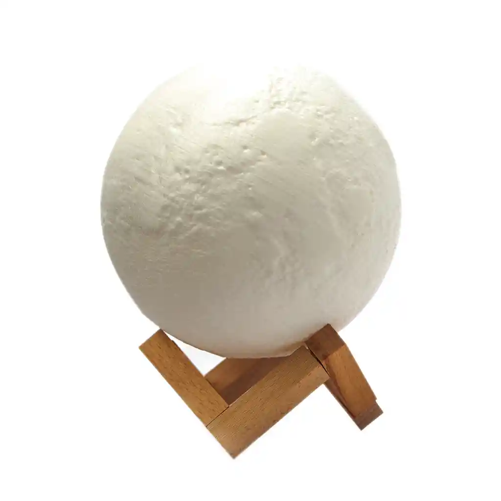 Esta lámpara está fabricada con la innovadora tecnología de impresión 3D, que restaura la verdadera apariencia de la luna. funciona con conexión a la luz e incluye una base de madera, perfecta para darle luz a tus espacios mientras los adornas.