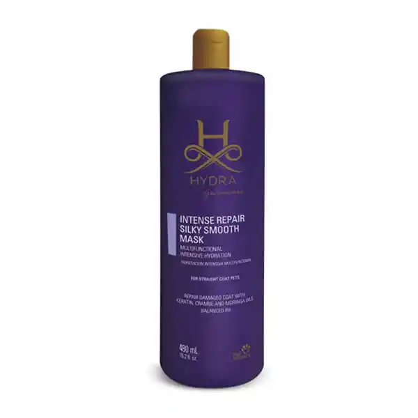 Hydra intense repair silky smooth mask, es una mascarilla hidratante multifuncional especial para peludos de pelo largo. Contiene keratina, creatina, D-pantenol, aceite de crambe y aceite de moringa.