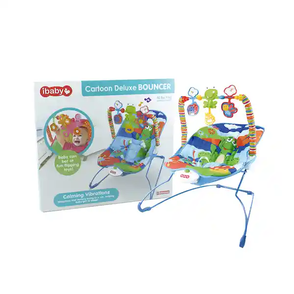 Silla Mecedora Para Bebe Vibradora Musical Azul 12 M Silla Para Bebé de Máximo 9 Kg Vibra Para Relajar al Bebé. Incluye También 3 Juguetes Uno de Ellos Una Ranita Musical. La Tela Puede Separarse de la Silla Para Ser Lavada.