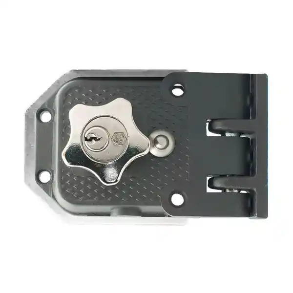 Cerraduras Para Puertas y Rejas Que Abren Hacie el Interior o Puertas Corredizas. Boton Seguro. Tipo de Candado Con Macho Vertical. Perilla Para Retraer el Macho Desde el Interior. Platina y Recibidor Soldables. Sku: 069255
