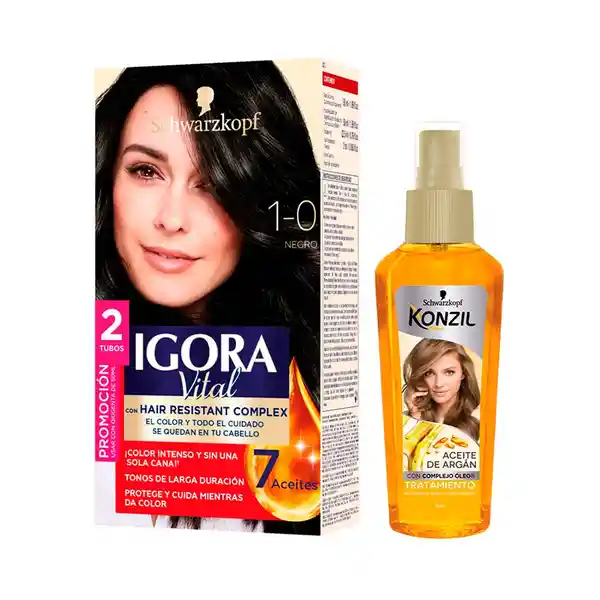 Igora Tinte Vital Permanente Tono 1.0 + Aceite Konzil