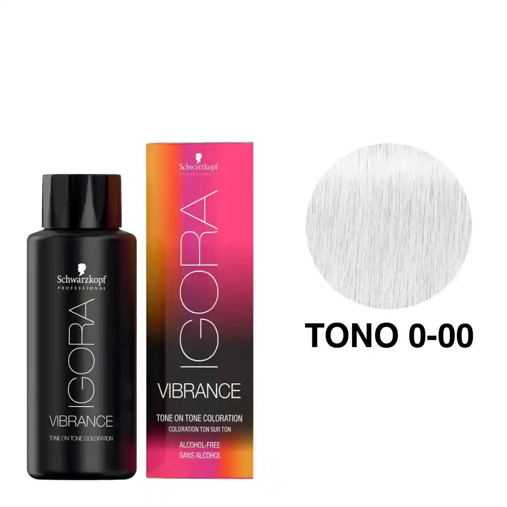 Igora Vibrance Tono 0-00 Neutro 60mL IGORA VIBRANCE es una coloración semi-permanente vanguardista que tiene una durabilidad de hasta 25 lavados. Gracias al nuevo Complejo Moisture Protecting ahora ofrece hasta un 100 % más de brillo instantáneo y una protección del cabello mejorada. Disponible en 68 tonos que complementan a la perfección con la gama de la coloración permanente IGORA ROYAL para una disponer de una gran cantidad de servicios de aplicación dual. Beneficios: Cubre de un 50% a 70% las canas. Coloración duradera. Brillo instantáneo. Modo de uso: La proporción de la mezcla debe ser 1:1 con Activador Igora Vibrance Utilizar un recipiente no metálico. Mezclar hasta conseguir una mezcla homogénea. Aplicar en la totalidad del cabello empezando desde la raíz, en cabello seco sin lavar. Tiempo de exposición: El tiempo de exposición del nuevo IGORA VIBRANCE es de hasta 20 minutos. Para aplicaciones globales en todo el cabello o en el crecimiento de la raíz recomendamos un tiempo de exposición de 10-20 minutos y de 5-20 minutos para un servicio de brillo. Nota: Leer atentamente las instrucciones al interior de la caja.