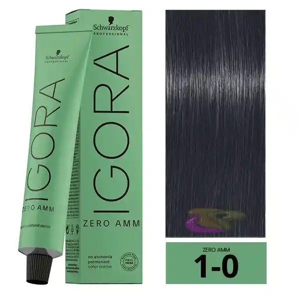 IGORA ZERO AMM (SIN AMONIACO) 1-0 NEGRO NATURAL 60 ML : Su fórmula con la Tecnología Phytolipid contiene una mezcla de aceites micronizados naturales y combinaciones de pigmentos optimizados para una penetración homogénea de los pigmentos de la raíz a las puntas. Estos aceites micronizados, compuestos por aceite de semilla de uva y aceite de semilla de albaricoque, ayudan a mejorar el rendimiento para conseguir unos resultados fieles a la carta de color y duraderos. Enriquecida con ácidos grasos Omega 9 no saturados, los aceites envuelven el cabello, ayudando a equilibrar la hidratación en el interior del cabello para unos resultados de cuidado óptimos. En lugar de amoníaco, IGORA ZERO AMM ha sido formulado con un agente alcalinizante alternativo llamado monoetanolamina (MEA) que proporciona el mismo valor de pH que el amoníaco y, al mismo tiempo, es casi inodoro, por lo que crea una experiencia de coloración agradable. 1. Mezcla optimizada de combinaciones de pigmentos y aceites micronizados naturales para unos resultados de color naturales fieles a la carta de color. 2. Los aceites micronizados aumentan la eficacia de la dispersión para fomentar activamente que los pigmentos penetren de manera homogénea en el cabello. 3. Las combinaciones de pigmentos penetran en el córtex de una manera más eficaz para unos resultados mejorados. 4. La preciada mezcla de aceites micronizados naturales con omega 9 sella la cutícula para unos resultados de cuidado óptimos y un color intenso y duradero.