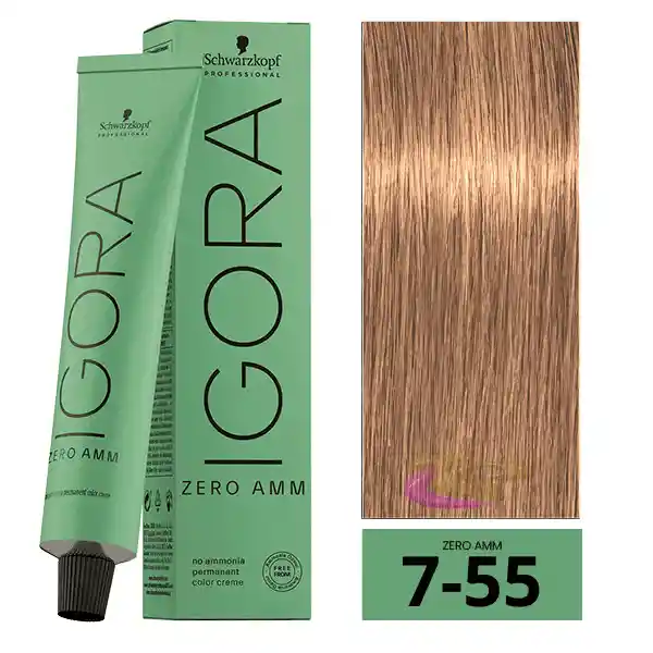 IGORA ZERO AMM (SIN AMONIACO) 7-55 RUBIO MEDIO DORADO INTENSO 60 ML : Su fórmula con la Tecnología Phytolipid contiene una mezcla de aceites micronizados naturales y combinaciones de pigmentos optimizados para una penetración homogénea de los pigmentos de la raíz a las puntas. Estos aceites micronizados, compuestos por aceite de semilla de uva y aceite de semilla de albaricoque, ayudan a mejorar el rendimiento para conseguir unos resultados fieles a la carta de color y duraderos. Enriquecida con ácidos grasos Omega 9 no saturados, los aceites envuelven el cabello, ayudando a equilibrar la hidratación en el interior del cabello para unos resultados de cuidado óptimos. En lugar de amoníaco, IGORA ZERO AMM ha sido formulado con un agente alcalinizante alternativo llamado monoetanolamina (MEA) que proporciona el mismo valor de pH que el amoníaco y, al mismo tiempo, es casi inodoro, por lo que crea una experiencia de coloración agradable. 1. Mezcla optimizada de combinaciones de pigmentos y aceites micronizados naturales para unos resultados de color naturales fieles a la carta de color. 2. Los aceites micronizados aumentan la eficacia de la dispersión para fomentar activamente que los pigmentos penetren de manera homogénea en el cabello. 3. Las combinaciones de pigmentos penetran en el córtex de una manera más eficaz para unos resultados mejorados. 4. La preciada mezcla de aceites micronizados naturales con omega 9 sella la cutícula para unos resultados de cuidado óptimos y un color intenso y duradero.