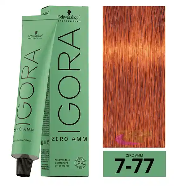 IGORA ZERO AMM (SIN AMONIACO) 7-77 RUBIO MEDIO COBRIZO INTENSO 60 ML : Su fórmula con la Tecnología Phytolipid contiene una mezcla de aceites micronizados naturales y combinaciones de pigmentos optimizados para una penetración homogénea de los pigmentos de la raíz a las puntas. Estos aceites micronizados, compuestos por aceite de semilla de uva y aceite de semilla de albaricoque, ayudan a mejorar el rendimiento para conseguir unos resultados fieles a la carta de color y duraderos. Enriquecida con ácidos grasos Omega 9 no saturados, los aceites envuelven el cabello, ayudando a equilibrar la hidratación en el interior del cabello para unos resultados de cuidado óptimos. En lugar de amoníaco, IGORA ZERO AMM ha sido formulado con un agente alcalinizante alternativo llamado monoetanolamina (MEA) que proporciona el mismo valor de pH que el amoníaco y, al mismo tiempo, es casi inodoro, por lo que crea una experiencia de coloración agradable. 1. Mezcla optimizada de combinaciones de pigmentos y aceites micronizados naturales para unos resultados de color naturales fieles a la carta de color. 2. Los aceites micronizados aumentan la eficacia de la dispersión para fomentar activamente que los pigmentos penetren de manera homogénea en el cabello. 3. Las combinaciones de pigmentos penetran en el córtex de una manera más eficaz para unos resultados mejorados. 4. La preciada mezcla de aceites micronizados naturales con omega 9 sella la cutícula para unos resultados de cuidado óptimos y un color intenso y duradero.