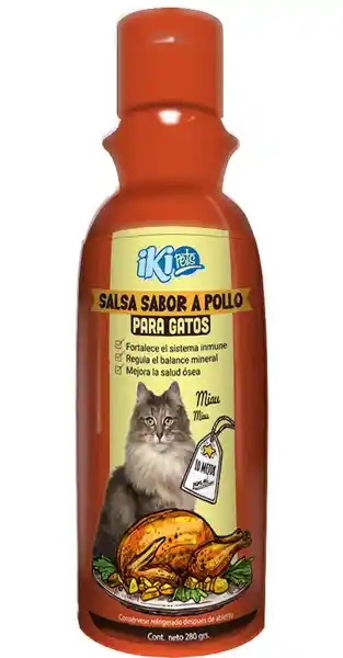 Esta deliciosa salsa para gatos sabor a pollo, hará que tu mascota disfrute más el consumo de su alimento seco. Gracias a que esta elaborado con ingredientes naturales y frescos. Diseñado para mejorar la textura del alimento seco de su preferencia y siendo así, nunca fue tan fácil que tu mascota disfrutara consumiendo su alimento. Fortalece el sistema inmune gracias a su contenido de Aceites Esenciales.