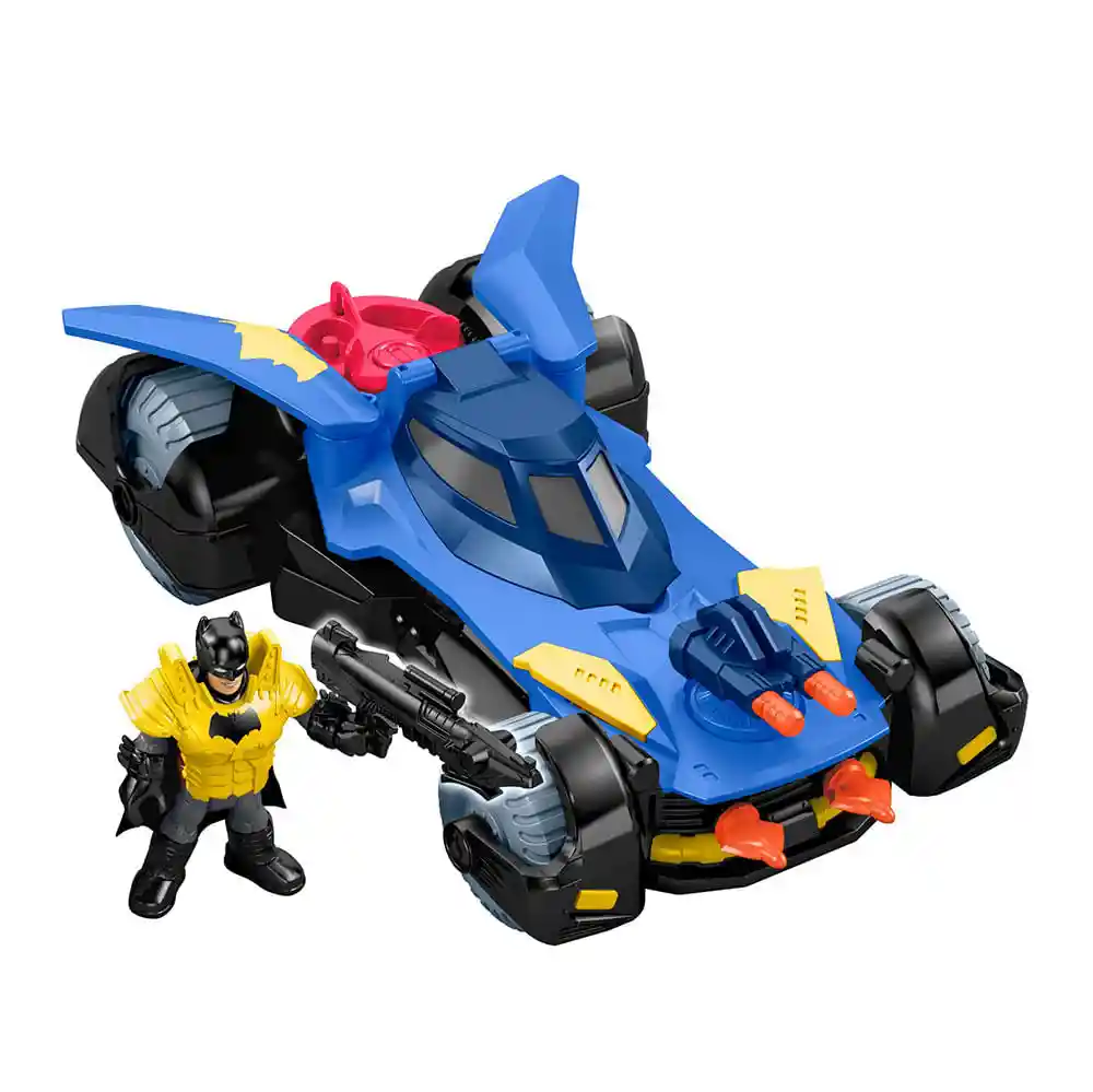 ¡Patrullar Las Calles de Ciudad Gótica Nunca Había Sido Tan Emocionante! Abre la Cabina y Coloca a Batman Dentro de Batimóvil Para Empezar a Conducir en Busca de Problemas. Abre Las Alas Del Batimóvil Para Lucir el Símbolo Del Murciélago y Mostrarle a Los Villanos Quién es el Jefe en la Ciudad. Uh, oh ¡El Guasón Está Haciendo Sus Viejos Trucos y no es Cuestión de Risa! le Está Disparando a Batman. Gira el Disco de Activación a la Izquierda en el Batimóvil Para Sacar Los Escudos y Rotar Los Cañones ¡Y Gíralo a la Derecha Para Disparar! ¡te Tengo, Guasón! ¿Quién va a Ser el Que Ríe al Último? Seguro Que Este Genial Vehículo va a Acelerar la Imaginación de Los Niños Mientras Van a Toda Velocidad de Una Emocionante Batalla en Ciudad Gótica a Otra, ¡Creando Aventuras Mientras lo Hacen! ¡Activa la Aventura Con Imaginext!