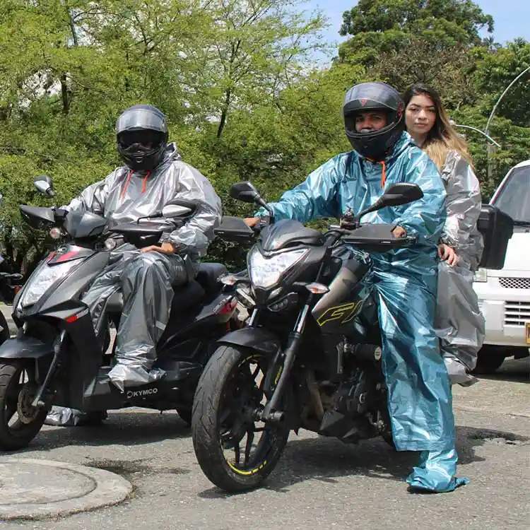 En este cómodo e innovador empaque, usted podrá tener un impermeable que cumple las mismas funciones del tradicional aun menor costo y optimizando espacio. Te protege de la lluvia en cualquiera de tus aventuras diarias. El mejor impermeable que podrás encontrar, con bandas reflectivas que te harán mas visible en las calles. El impermeable es una solución perfecta mientras llueve para que permanezcas seco, cómodo y protegido. Es muy útil por su portabilidad, peso, tamaño y el costo, se adapta al cuerpo y es muy ergonómico al momento de transportarse, y perfecto para los viajes largos en carretera. Como recomendación no olvides usar los elementos de protección, como el casco, todo por tu seguridad ya que estarías conduciendo un vehículo y usarías las vías de la ciudad. CARACTERÍSTICAS: Tecnología de vanguardia Sello full system para garantizar total impermeabilidad en la entrepierna. Estilo Perfecto Con colores metalizados, cordón de ajuste en capucha, resorte en puños, cintura y botas. Impermeable premium en su categoría, ideal para los moteros que van de viaje, a trabajar, estudiar o a rodar con sus amigos en las carreteras del país. ESPECIFICACIONES:Colores: Gris y Verde Metalizado y rosa. Mas grueso, Calibre 2.0. Resortes en puño, cintura y botas. Cordón de ajuste en capucha. Mangas extra largas. 6 Bandas reflectivas: 2 en espalda, 2 en brazos y 2 en las pantorrillas. Tallaje mas amplio para que puedas ir con tu bolso y chaqueta protegidos de la lluvia. Sello de seguridad full system en la entre pierna (tiro y pantalón), para que estés seguro de llegar seco a tu destino. Peso: 238 gr. Medidas:Talla XXL: Chaqueta: Largo de los hombros 83 cm, largo de la capucha hasta abajo 1.10 cm y de ancho 82 cm. Pantalón: Largo 1.20 cm y de ancho 62. Botas: Largo 36 cm y de ancho 40 cm. INCLUYE: 1 Impermeable de chaqueta y pantalón reflectivos.
