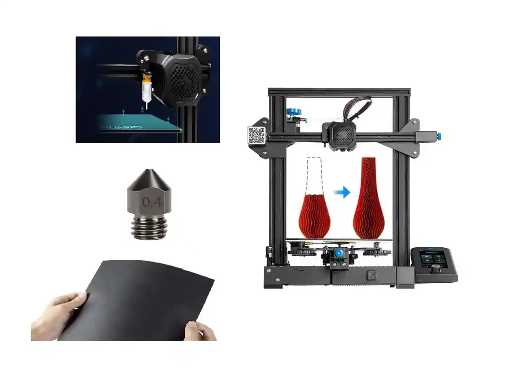 <strong>SE ENTREGA ENSAMBLADA, PARA MEJOR EXPERIENCIA.</strong> <strong><em>SOLO RECOGIDA LOCAL DENTRO DE BOGOTA.</em></strong> <strong>*****IMPRESORA 3D PARA ENTREGA INMEDIATA, ENSAMBLADA****</strong> <strong>*****TARJETA CREALITY V4.2.2 DE 32 BIT, CHIP STM32F403RET6 CON DRIVER TMC2208 ULTRASILENT.****</strong> <strong>*****STICKER MAGNETICO REMOVIBLE, QUE TIENE MEJOR ADHERENCIA QUE EL VIDRIO ULTRABASE.****</strong> <strong>*****BOQUILLA DEL EXTRUSOR EN ACERO ENDURECIDO, SOPORTA MAS TIEMPO DE USO Y MEJORA LA CALIDAD****</strong> <strong>****** SENSOR DE AUTONIVELACION BLTOUCH , PARA MEJORAR LA ADHERENCIA.****</strong> Mejor valor: el Ender 3 V2 tiene el mismo volumen de construcción de 8.661 x 8.661 x 9.843 in que su predecesor, que es más fiable y fácil de usar. Durabilidad mejorada y marco totalmente metálico que proporcionan la rigidez adicional que necesitas para impresiones consistentemente geniales. Fuente de alimentación mejorada: equipada con una nueva fuente de alimentación Meanwell que ofrece una potencia estable y consistente para un mejor rendimiento. Interfaz de usuario simple y clara: rediseñada para una mejor experiencia fuera de la caja. Sin límites en tu creatividad: compatible con la mayoría de filamentos de impresora 3D, lo que te da la flexibilidad para crear lo que quieras. Características de la impresora 3D Tecnología de impresión: FDM (Modelado por deposición fundida) Materiales (Filamentos): PLA, ABS, PETG, TPU Área de impresión: 220x220x250mm Diámetro del filamento: 1.75mm Extrusora: Individual Bowden Diámetro de la boquilla: MK8 de 0.4 mm ACERO ENDURECIDO Hotend: Creality Ender 3 Hotend Assembly Temperatura máxima de impresión: 260 ° C Plataforma de impresión: Cama de vidrio Carborundum (carburo de silicio) UltraBase Temperatura máxima de plataforma: 100 ° C Tipo de plataforma (Cartesiana/Fija): Cartesiana Nivelación de la plataforma: Manual (Tornillos de esquina ajustables manuales / grandes) Sistema de enfriamiento: Dos ventiladores que enfrían la extrusora, un ventilador radial que enfría la impresión Resolución: 100 a 400 micras Software de corte compatible: Cura / Simplify3D Interfaz de usuario: Pantalla LCD a color 4,3 pulgadas. No táctil, con potenciómetro Transferencias de archivos - Conectividad: Tarjeta MicroSD / Micro USB Tipos de archivos admitidos: .stl, .obj, .amf Resumen de impresión, reanudación de impresión: Sí Detección de fin de material: No Electrónica silenciosa: Si LA COMPRA INCLUYE: 1x IMPRESORA ENDER 3 V2 ENSAMBLADA. 1x 1 KG FILAMENTO PLA 1.75mm 1x KIT HERRAMIENTAS. 1x MICRO SD. 1x CABLE DE PODER. 1x CABLE DATOS Micro USB.