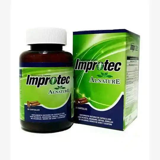 Improtec suplemento dietario en cápsula con Saw Palmeto, Arandano, Ortiga, Semillas deLa Saw palmetto es una planta medicinal de la especie Serenoa repens, que sirve para complementar el tratamiento de la impotencia sexual y de la hiperplasia prostática (agrandamiento de la próstata), además se evitar la caída del cabello. calabaza, Diente de León y Licopeno ////
