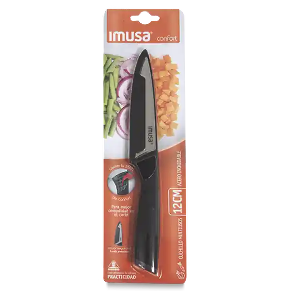 Multiusos de 12 cm Con Hoja en Acero Inoxidable de Alto Desempeño y Durabilidad. Mango Con Zona de Confort Para Mayor Seguridad y Comodidad. Para Cortar Vegetales Grandes y Largos, Así Como Carnes Medianas. Incluye Cobertor Para la Hoja.