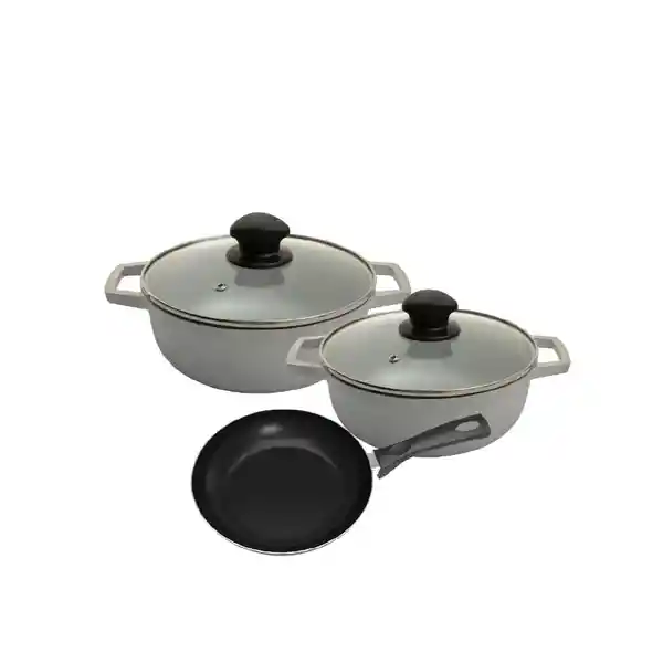 Set Imusa Contiene 3 Unidades: Sartén 1 Und + Caldero Con Tapa de Vidrio 1 Und + Caldero Con Tapa 1 Und.