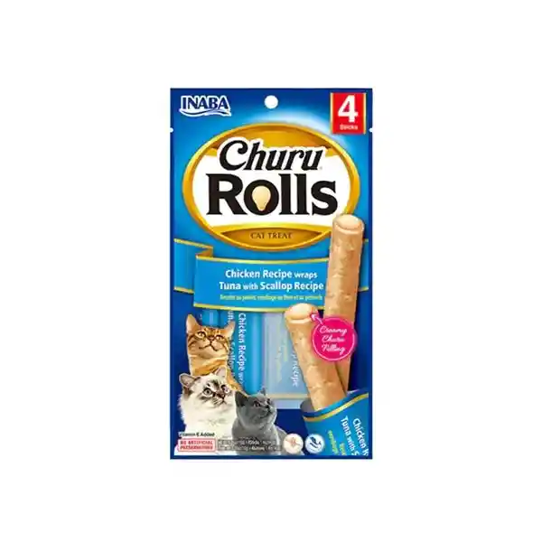 In Inaba Cat Snack Churu - Rolls 4p Chicken Recipe Wraps Tuna With Scallop Recipe 40 Gr