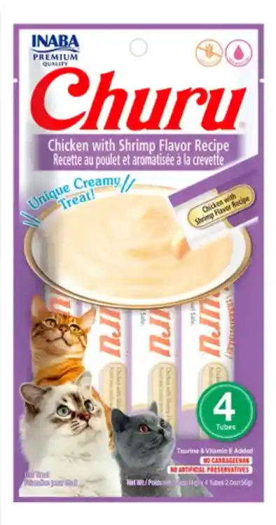El Inaba Churu de pollo con camarón es un snack cremoso y altamente hidratante diseñado para fortalecer el vínculo con tu gato al dárselo directamente del tubo. Es una opción saludable y natural, ya que no contiene granos, conservantes artificiales ni carragenina, y viene reforzado con taurina y vitamina E para su bienestar. Al ser un puré irresistible, es la herramienta perfecta para gatos exigentes, para esconder medicinas o simplemente como un premio bajo en calorías que les encanta.