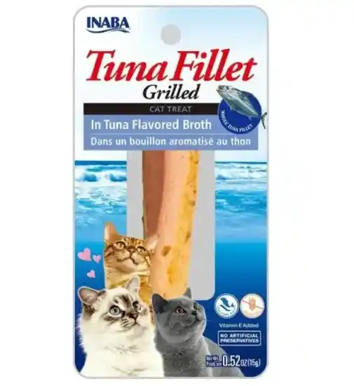 Consiente a tu felino con el delicioso INABA Cat Snack Grilled Tuna Fillet, un snack premium hecho con filetes de atún natural, asados a la perfección y bañados en un suculento caldo sabor atún.