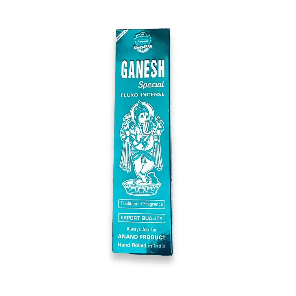 Incienso Ganesh Special Anand 25 g con aroma tradicional. Relaja, armoniza energías y crea un ambiente espiritual de paz.