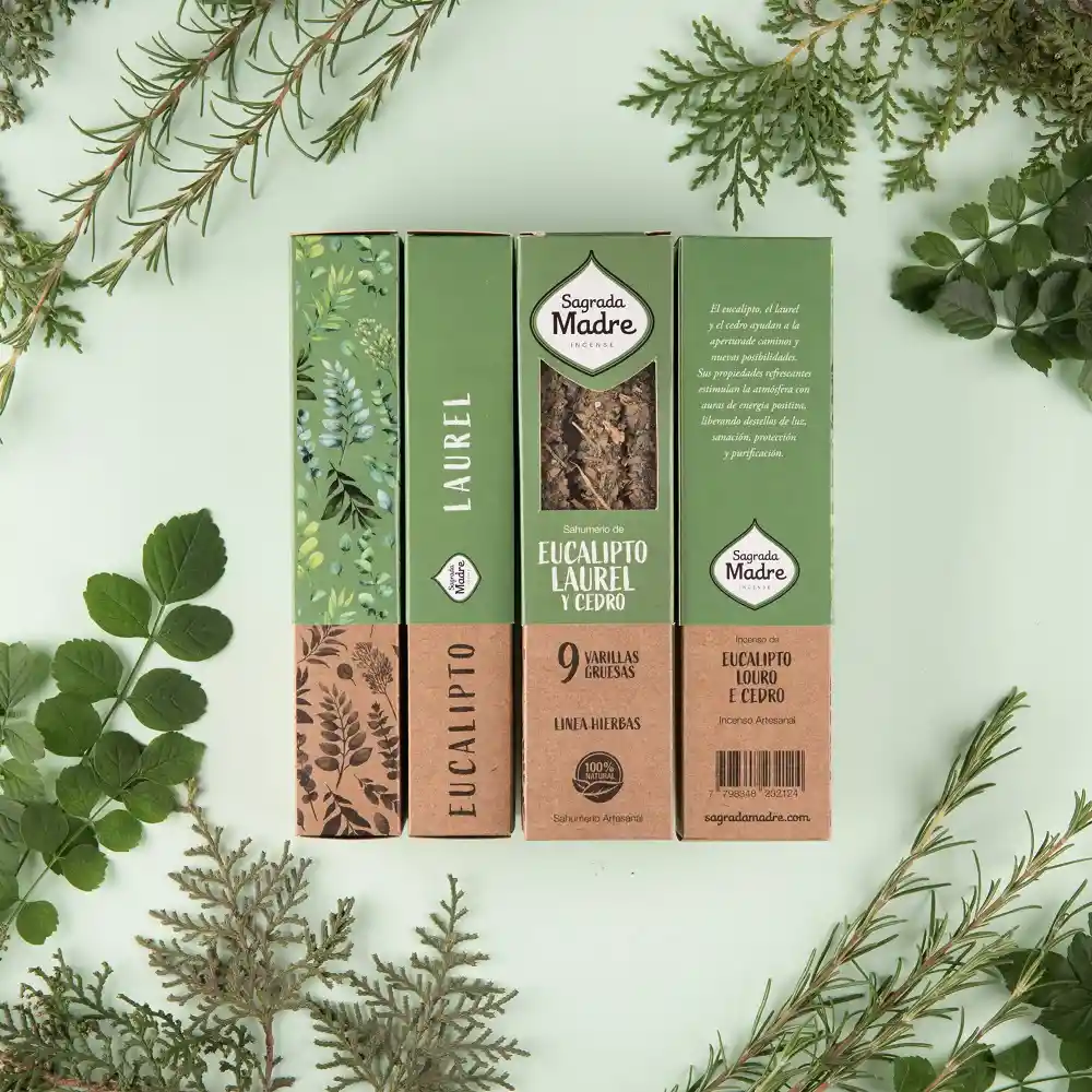 El eucalipto, el laurel y el cedro ayudan a la apertura de caminos y nuevas posibilidades. Sus propiedades refrescantes estimulan la atmósfera con auras de energía positiva, liberando destellos de luz, sanación, protección y purificación. Composición: Resina pura de Incienso, Aceite concentrado, biomasa de frutas, carbón vegetal, aglutinante natural y sal. Contenido: 9 varillas gruesas de duración extra. Duración: cada varilla dura 50 min Incienso Artesanal Hecho a mano