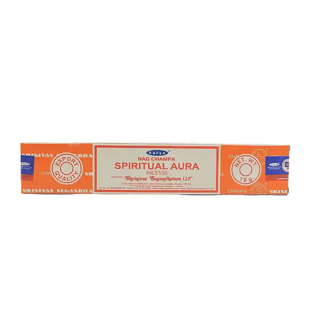 El incienso Spiritual Aura del gigante indio Satya está disponible en una caja de 15 gramos en Mistersmoke! Este incienso natural sin ingredientes tóxicos viene directamente de la India, donde ha sido elaborado a partir de resinas de calidad y plantas aromáticas para luego enrollarlo manualmente para ofrecerte efectos óptimos y además un aroma tan seductor como desees.