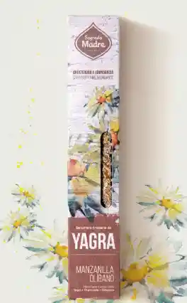 La exquisita fragancia del Yagra brinda acceso a los códigos sagrados del cosmos, combinada con el potente aroma del Olíbano favorecen la claridad mental intuitiva y se suma la Manzanilla que da paz y purifica el alma. Esta poderosa combinación expresa energía, entusiasmo, brindando éxitos y buena fortuna. Composición: Flores de manzanilla, aceite concentrado aromático, yagra, biomasa de fruta, carbón vegetal y sal.