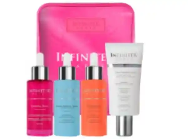 Kit Infinitek Paris Contiene 4 Unidades. Mejora la Textura Aclara y Unifica el Tono de tu Piel. Disminuye Visiblemente Manchas y Poros Dilatados. Protege tu Piel de Los Rayos Uvb Uva Luz Azul y Artificial. Ideal Para tu Rutina Am y Pm.
