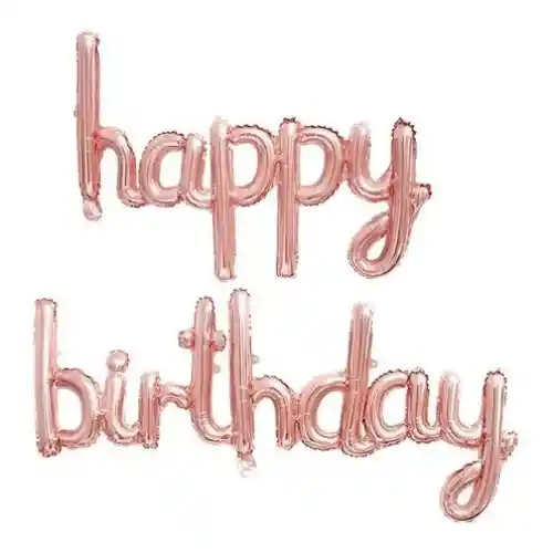 GLOBO INFLABLE HAPPY BIRTHDAY COLOR ORO ROSA. MEDIDAS. HAPPY: 36CMX82CM BIRTHDAY: 38CMX115CM
