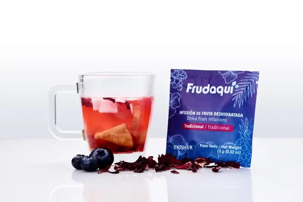TRADICIONAL x 15g💜💜💜 Piña, mango, flor de Jamaica, coco, arandano, stevia Prepara una deliciosa 😋 infusión, así de fácil (tres pasos): 1. Vierte en una taza con 7onzas de agua caliente. 2. Deja reposar por tres minutos.⏰ 3. ¡Disfruta en Casa! 🍊🍌🍓🍍🥭🥥