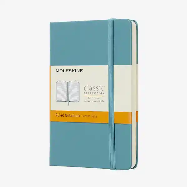 Lo Mejor De Moleskine La Colección De Cuadernos Classic. Esta Vez Disfruta De Este Notebook De Tamaño Pocket Con Tapa Dura De Color Azul Arrecife. Contiene 192 Hojas Rayadas De Tonalidad Crema. Incluye Bolsillo Interno.(sku45531)