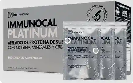 Immunocal Platinum tiene todas las ventajas de Immunocal, además de los componentes CMP y RMF. CMP (Proteínas moduladoras de citoquina): Las citoquinas son pequeñas proteínas biológicamente activas que actúan como señales en el sistema inmunológico para regular la inflamación. RMF (Fórmula moduladora de redox): La RMF incluye una mezcla exclusiva de citratos minerales que actúan para reducir los niveles de acidez en el cuerpo y sirven para apoyar el balance natural del pH. La inclusión de creatina en RMF, ayuda a mantener la función muscular adecuada.